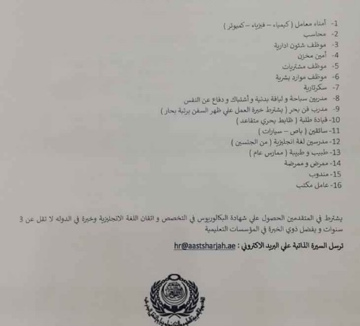 الاكاديمية العربية للعلوم والتكنولوجيا والنقل البحري بامارة الشارقة تعلن عن وظائف شاغرة جديدة